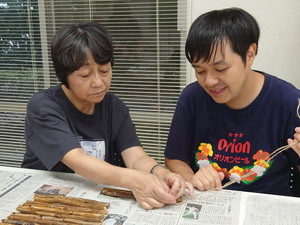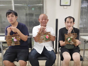 地域福祉施設「ちどり」第2会議室において13時から行いました。参加者は1人参加2名と親子参加1組でした。今回は、小枝を使った『壁掛け』を作りました。